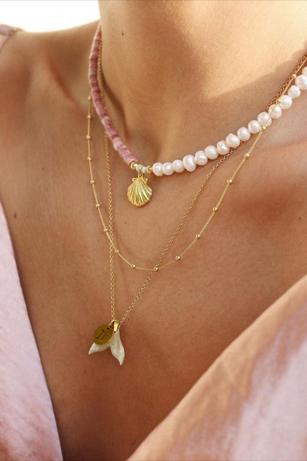 Layer your look with necklaces inspired by the sea. Featuring shell pendants, starfish charms, pearls, and gold chains, each piece captures the essence of coastal beach living and effortless summer style.